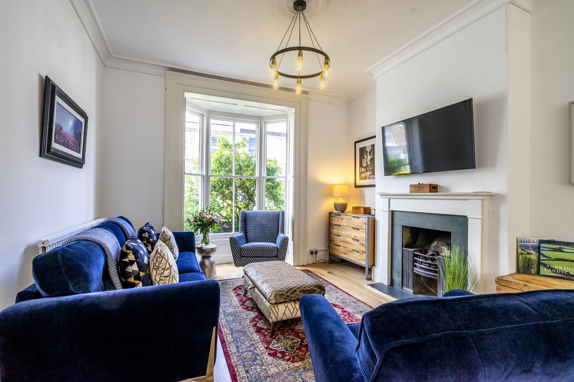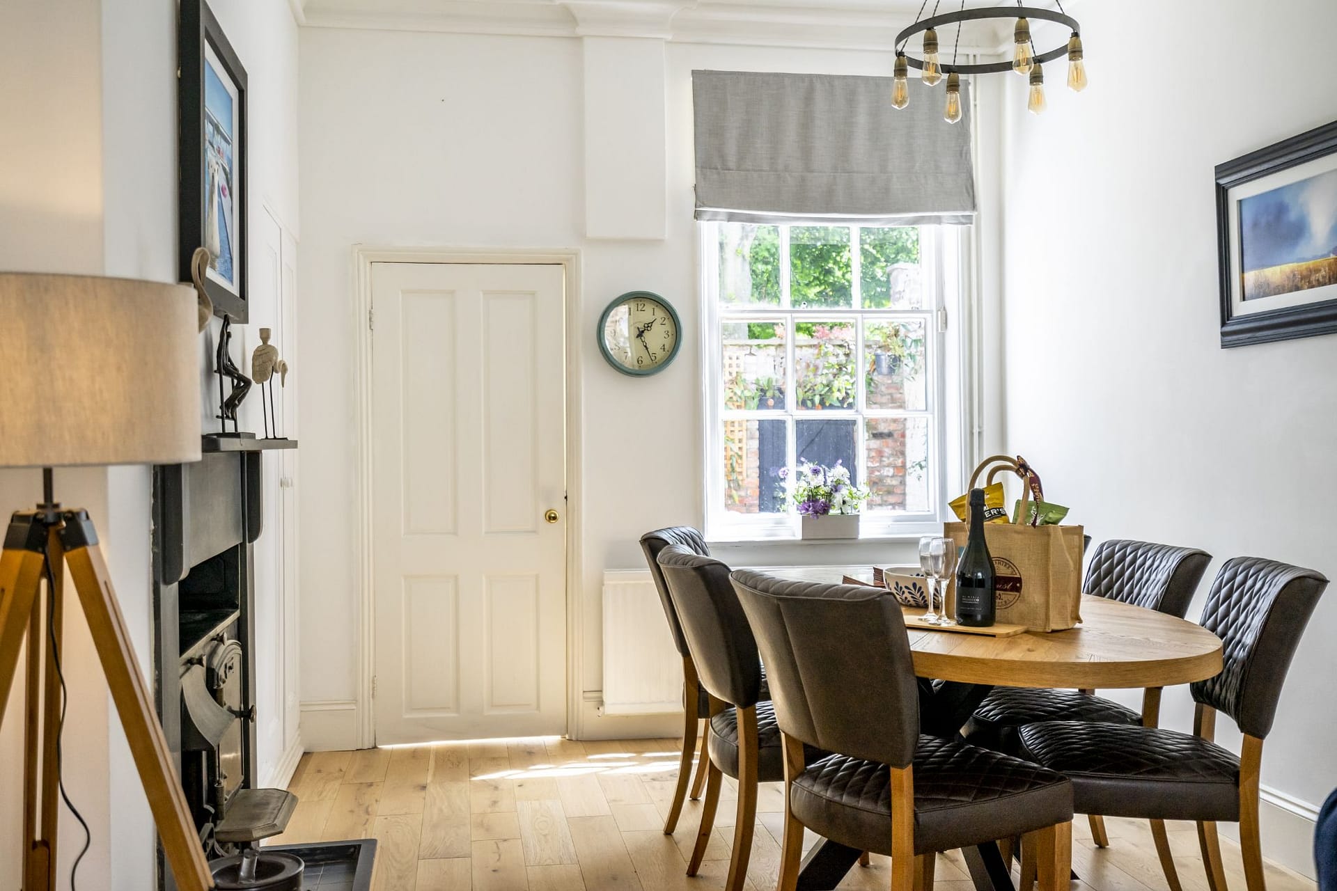St John’s Street Apartments is a stylish and spacious 3-bedroom property ideally located in the heart of York, just a few minutes’ walk from the iconic York Minster and the bustling city centre. The ground floor features a generous open-plan lounge and dining area with comfortable seating, a wall-mounted LCD Smart TV, and a dining table that seats six, making it perfect for family meals or relaxing evenings together. The fully equipped kitchen includes modern appliances such as a gas hob, oven, fridge freezer, and dishwasher, with an adjoining utility area offering a microwave, washing machine, and tumble dryer for added convenience. At the rear, a charming enclosed patio with outdoor seating provides a perfect spot to enjoy a drink or some fresh air during warmer months, while a small WC is located off the entrance hallway for guest convenience.