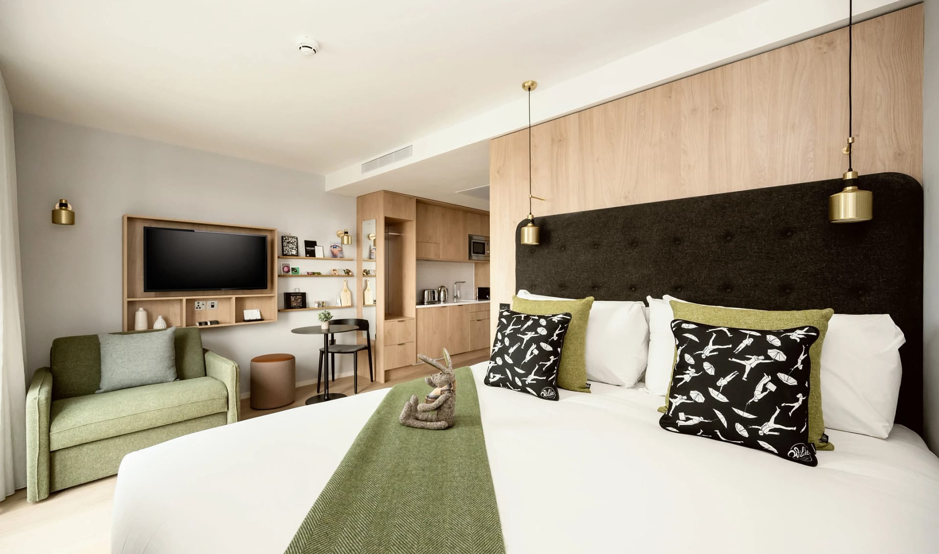 Inside the aparthotel, guests can expect contemporary, thoughtfully designed spaces equipped with all the comforts of home. Choose from sleek studio apartments or larger suites, each featuring a fully equipped kitchen, comfortable lounge area, high-speed WiFi, flatscreen TV, air conditioning, and ample workspace. Ideal for solo travellers, couples, or longer business stays, St. Peter’s Square Aparthotel provides a flexible, well-connected base with optional housekeeping, on-site laundry facilities, and 24-hour reception to make your stay seamless. The perfect blend of hotel service and residential comfort makes this an easy choice for those looking to stay productive and relaxed.