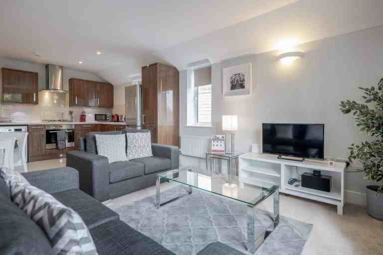 Nestled along a charming tree-lined street, Surbiton Maple Road Apartments enjoy a prime location just a short walk from Surbiton station, offering fast and direct links to London Waterloo in as little as 20 minutes. Inside, the living areas are open-plan and well-appointed, ideal for both relaxing evenings and productive workdays. Guests benefit from generous bedroom storage, sleek bathrooms, and practical layouts that make extended stays more comfortable. Whether you’re preparing your own meals in the fully equipped kitchen or stepping out to explore the local dining scene, the property offers a calm and well-connected base.