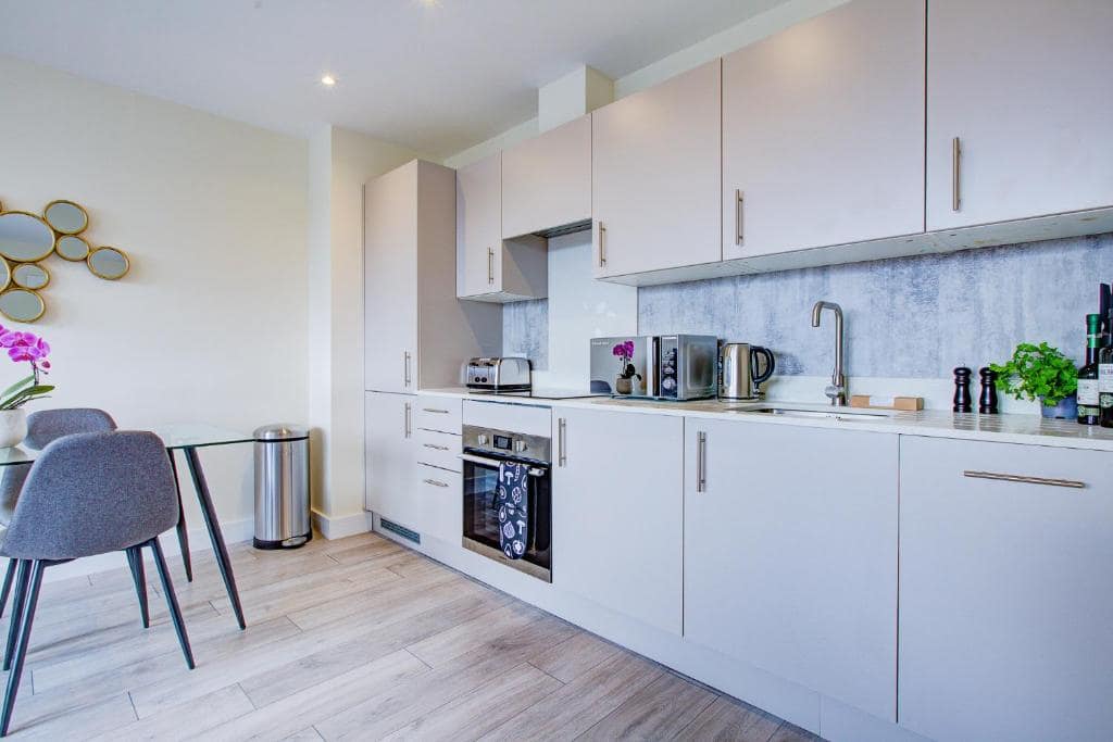 Each apartment at Sutton Serviced Apartments has been designed to meet the needs of both business and leisure travellers, with flexible spaces suitable for short stays, longer assignments, or even temporary relocations. The open-plan design encourages a seamless living experience, with space to cook, dine, and unwind at your own pace. Whether you’re hosting a client over dinner, catching up on work emails, or enjoying a quiet evening in, you’ll find these apartments offer both functionality and comfort in equal measure. The property’s convenient location further enhances its appeal, offering peace and privacy just minutes from a lively town centre.