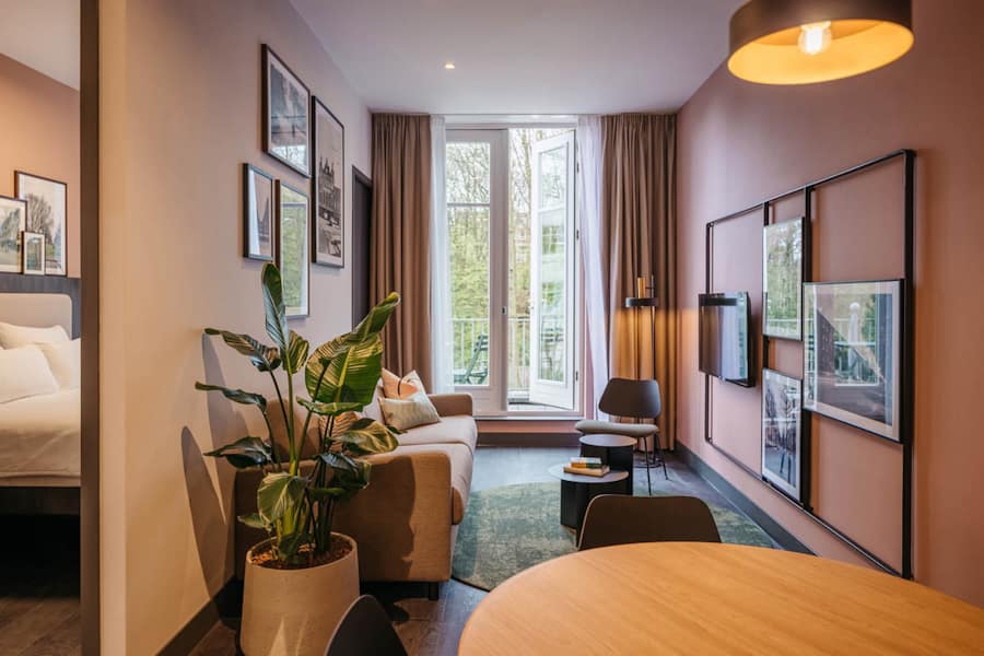 Guests enjoy access to a range of practical and stylish amenities, including an on-site café, shared workspaces, and comfortable communal lounges for relaxation or informal meetings. The apartments are within walking distance of supermarkets, gyms, restaurants, cinemas, and must-see cultural sites such as the Binnenhof, Escher Museum, and Mauritshuis. With The Hague Central Station only minutes away, travel to other Dutch cities—like Rotterdam, Delft, Amsterdam, and Utrecht—is fast, frequent, and easy. Business travellers will appreciate the proximity to embassies, law firms, and international courts, while families and students benefit from the safe, vibrant, and well-connected neighbourhood that surrounds the property.