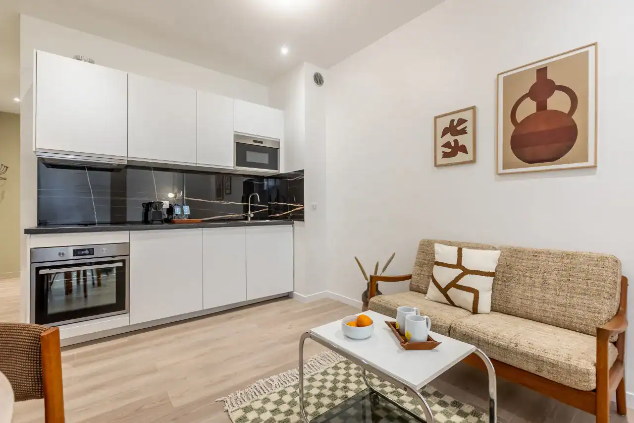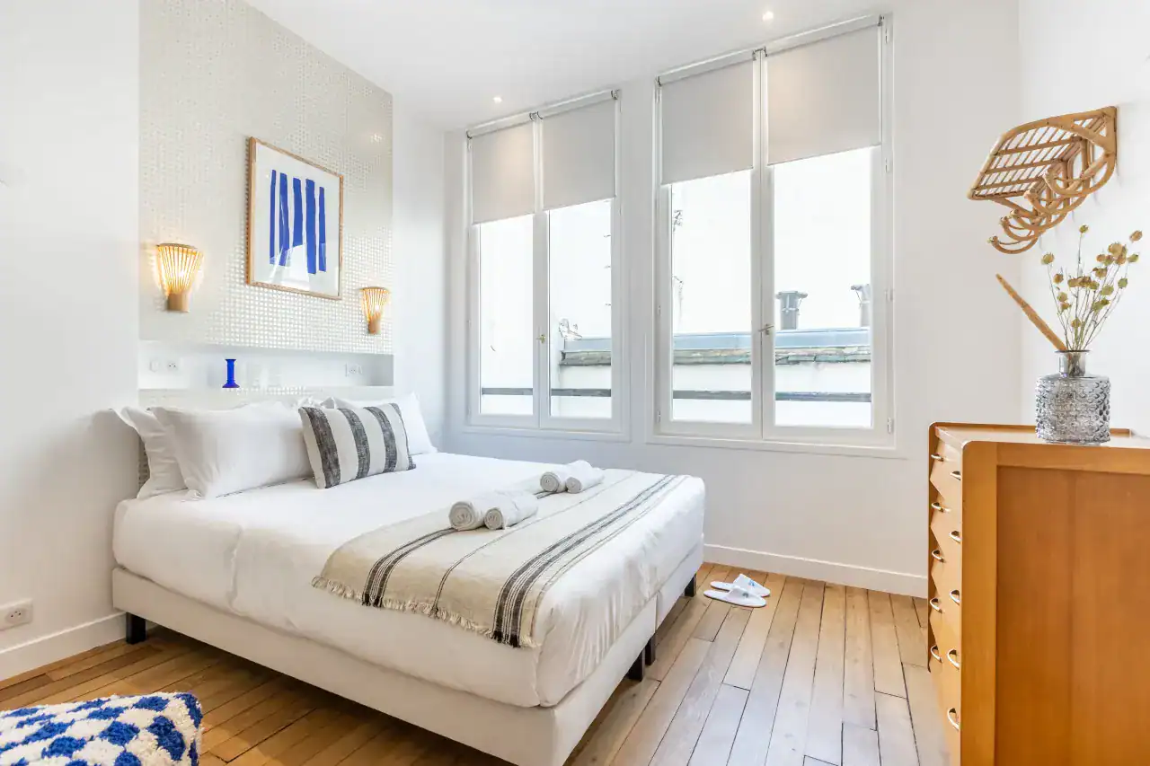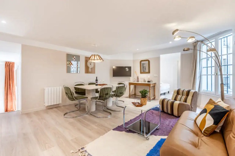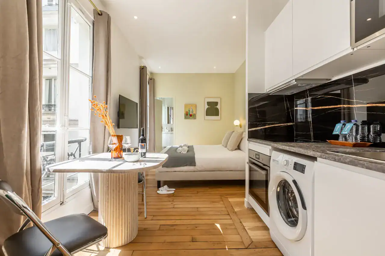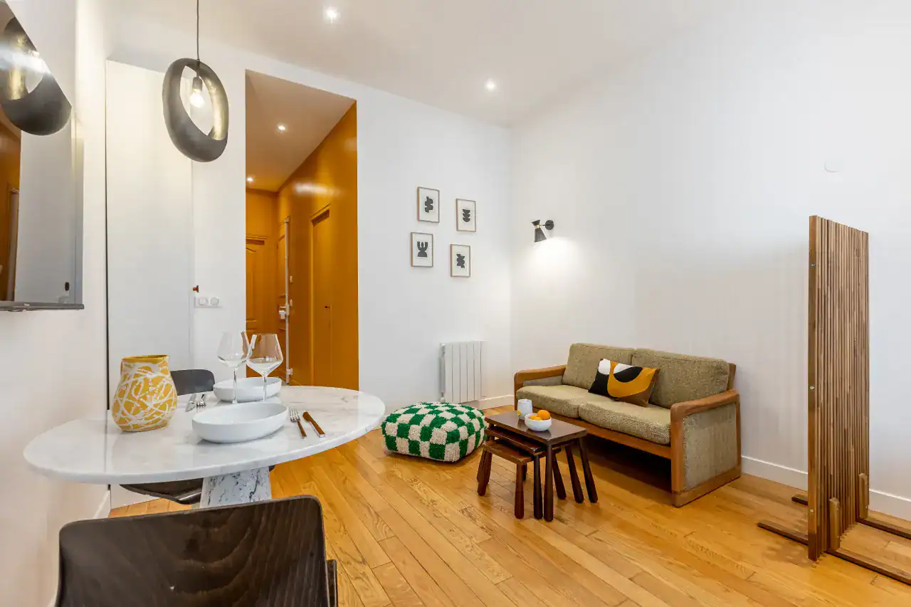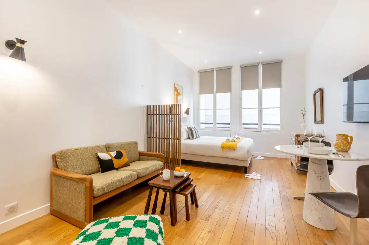 The Madeleine Apartments place you right in the elegant heart of Paris, offering a choice of beautifully designed accommodations to suit every type of traveler. Within this stylish building, guests can choose from three inviting studios, measuring 29m² and 36m² for up to two guests each, or a two-bedroom, two-bathroom apartment of 56m² that comfortably accommodates four guests. Each apartment has been carefully decorated by local interior designers to reflect Parisian glamour, combining retro, classic, and contemporary styles with thoughtful details. Whether you are visiting for a romantic escape, a family holiday, or a city break with friends, the spaces are designed to offer comfort, charm, and the feeling of living like a true Parisian.