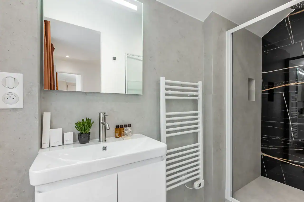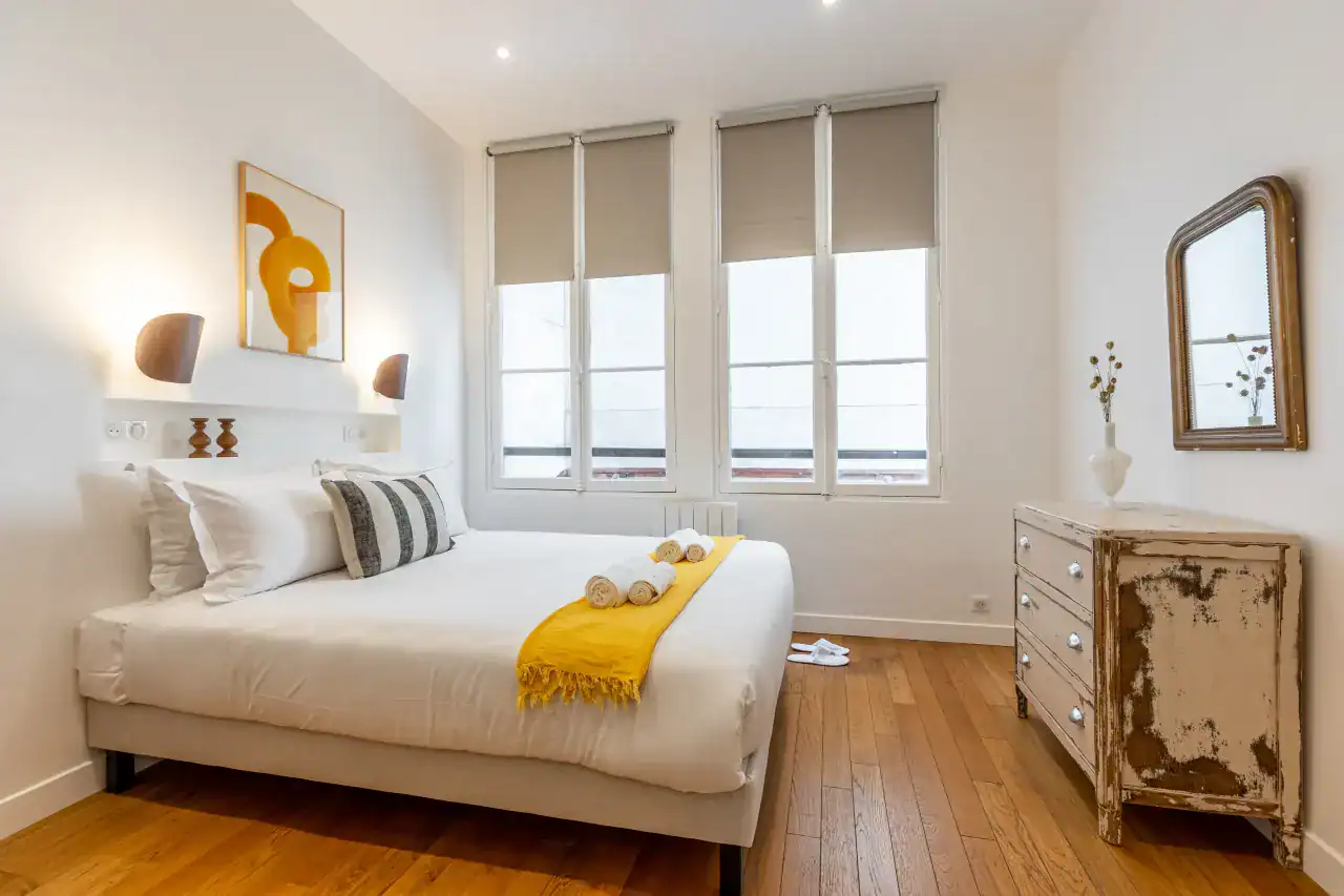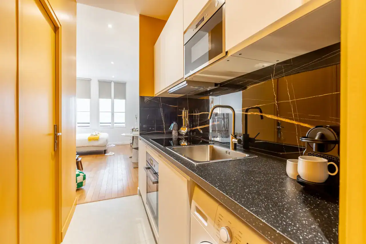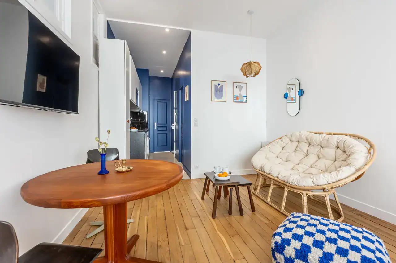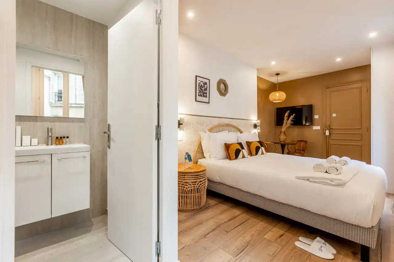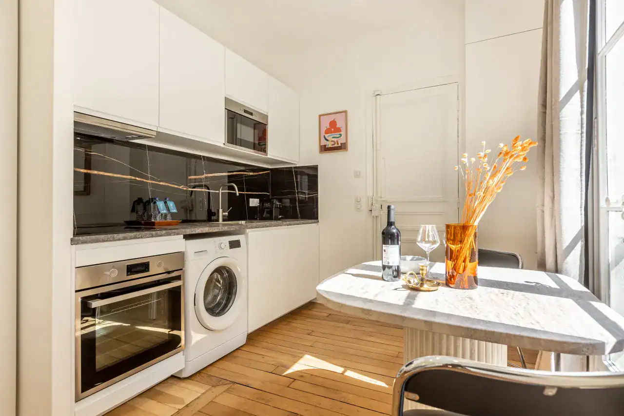 The Madeleine Apartments place you right in the elegant heart of Paris, offering a choice of beautifully designed accommodations to suit every type of traveler. Within this stylish building, guests can choose from three inviting studios, measuring 29m² and 36m² for up to two guests each, or a two-bedroom, two-bathroom apartment of 56m² that comfortably accommodates four guests. Each apartment has been carefully decorated by local interior designers to reflect Parisian glamour, combining retro, classic, and contemporary styles with thoughtful details. Whether you are visiting for a romantic escape, a family holiday, or a city break with friends, the spaces are designed to offer comfort, charm, and the feeling of living like a true Parisian.