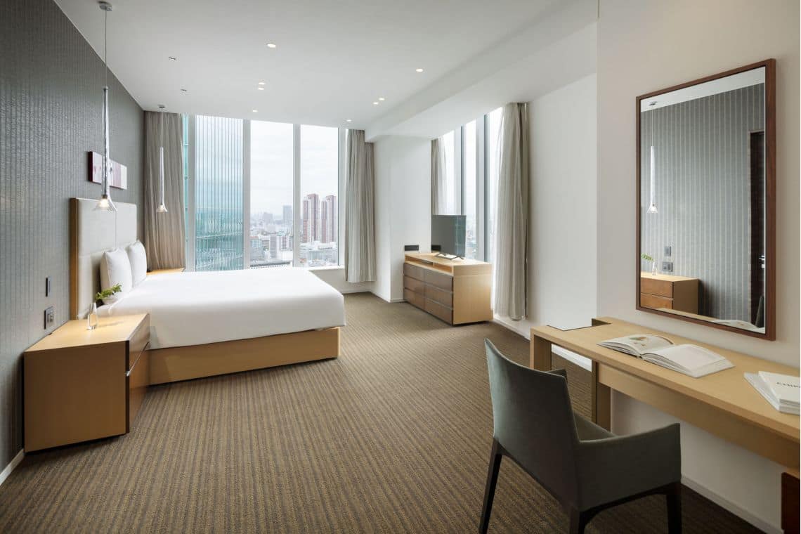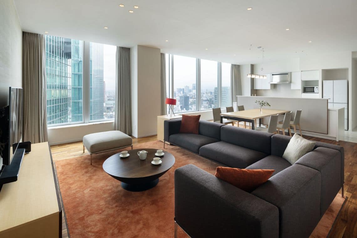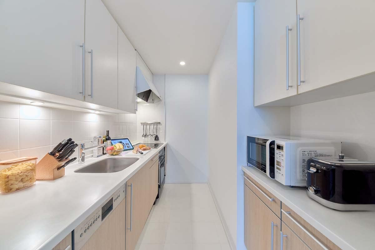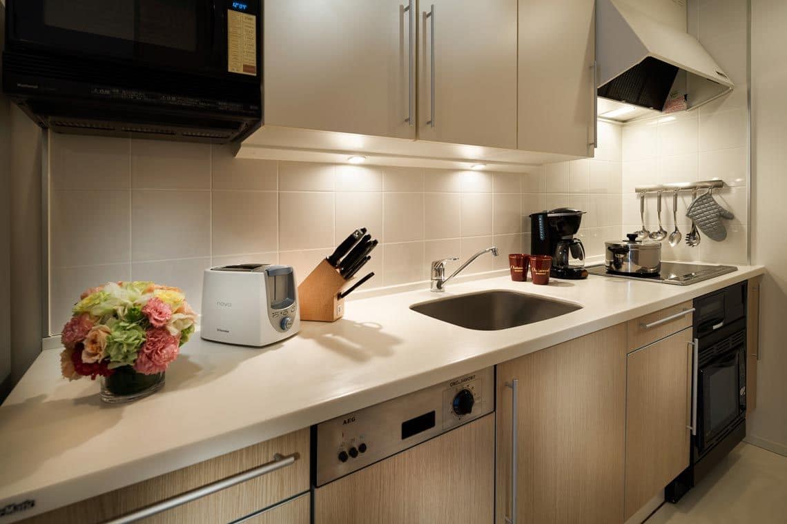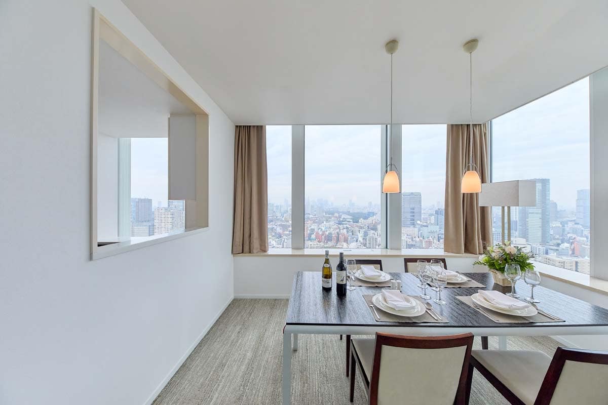 The aparthotel features a range of fully furnished serviced apartments, including studios as well as one-, two-, and three-bedroom layouts, designed to accommodate short visits and extended stays alike. Interiors combine modern comfort with subtle Japanese influences, creating a warm and welcoming residential feel. Apartments are equipped with practical amenities such as fully fitted kitchens, in-room washer and dryer units, air conditioning, and high-speed Wi-Fi, allowing guests to enjoy independence and flexibility during their stay. Spacious living areas provide comfortable settings for dining, working remotely, or simply unwinding after a day exploring the city.