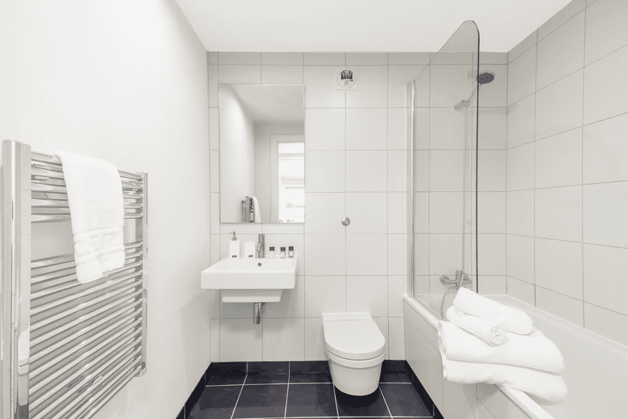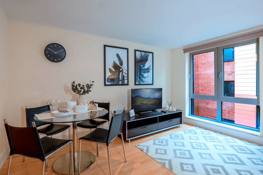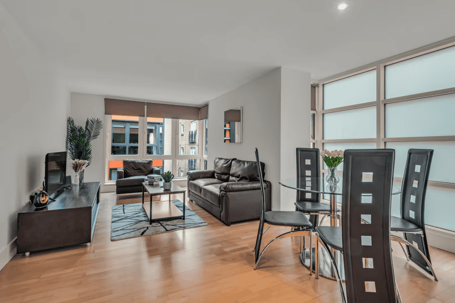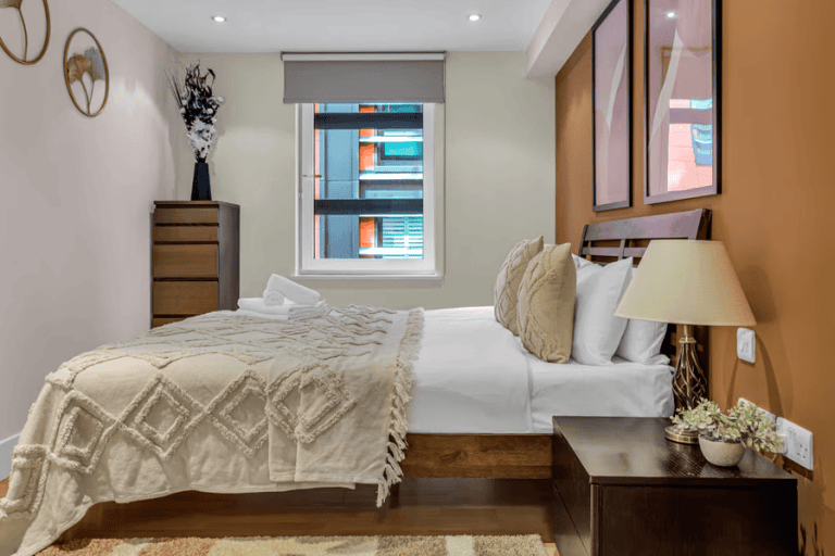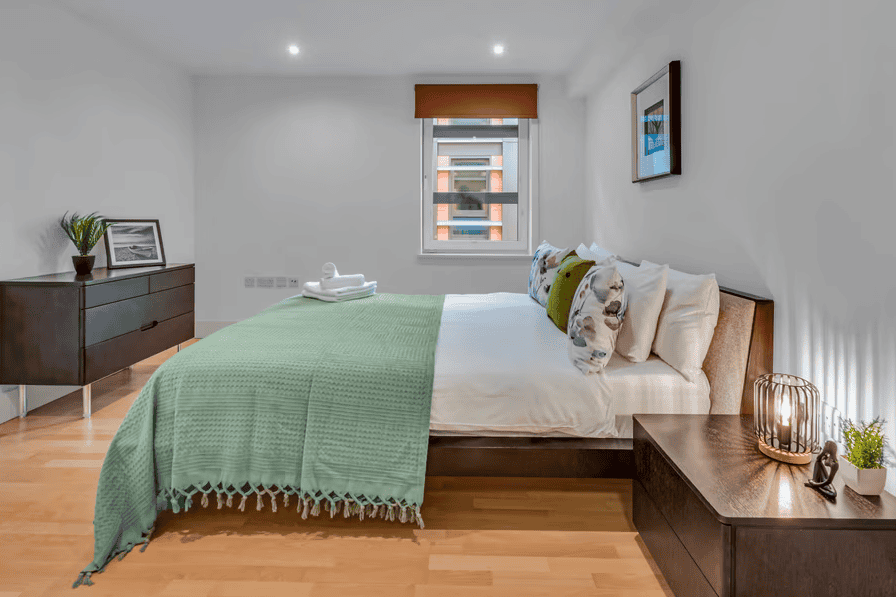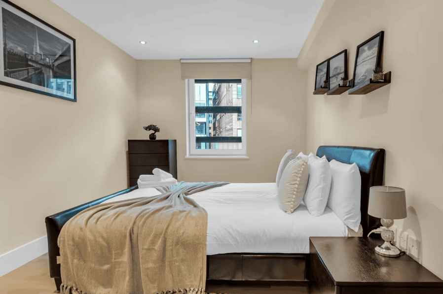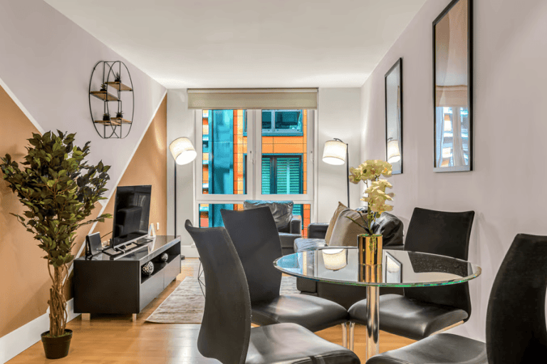 Each apartment is designed for long- and short-term stays alike, with fully equipped kitchens, spacious living areas, and calming, contemporary interiors. Whether you’re preparing meals, catching up on emails, or simply unwinding after a day in the city, the layout supports comfort, privacy, and flexibility. High-speed Wi-Fi and Smart TVs are included as standard, while generous windows offer natural light and, in many units, glimpses of London’s skyline or riverside below. These apartments suit corporate guests who need proximity to the City, as well as leisure travellers looking for a well-connected, quiet place to stay that offers a genuine London experience beyond the hotel lobby.