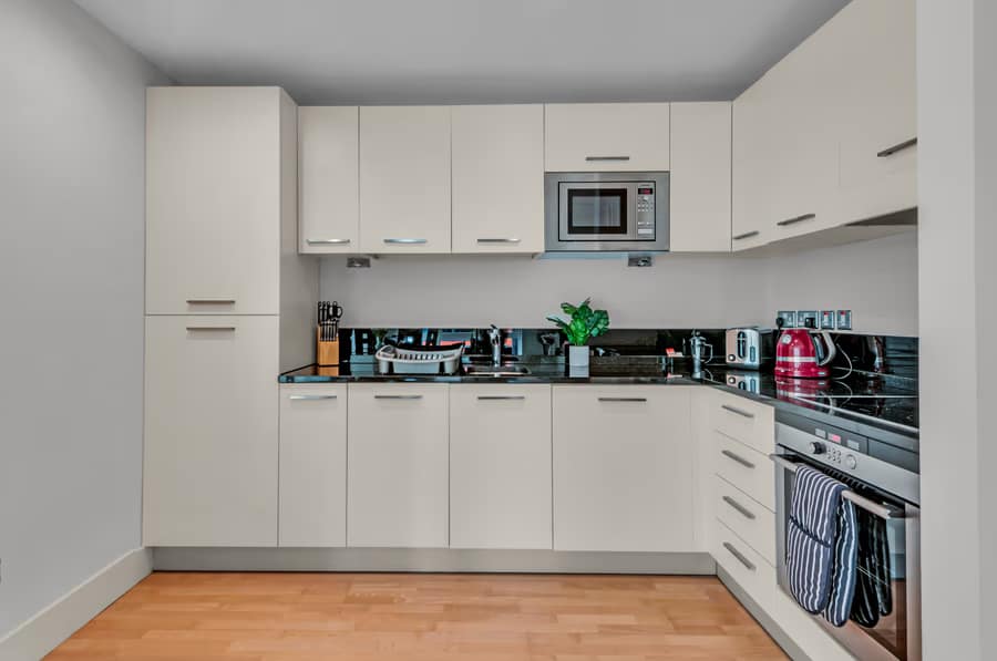The Aparthotel near St Paul’s offers a selection of beautifully appointed studios, one-, two-, and three-bedroom apartments, each designed with a unified aesthetic that feels both sophisticated and inviting. Soft neutral tones, rich wood accents, and signature green kitchen cabinetry create a warm and stylish atmosphere throughout. Thoughtful layouts include spacious living areas, elegant workspaces ideal for remote working, full kitchens perfect for home-cooked meals, and serene bedrooms with plush upholstered headboards. Bathrooms are modern and refined, featuring luxurious walk-in showers and high-quality fixtures, making each apartment a comfortable retreat for both short and long stays, no matter the occasion.