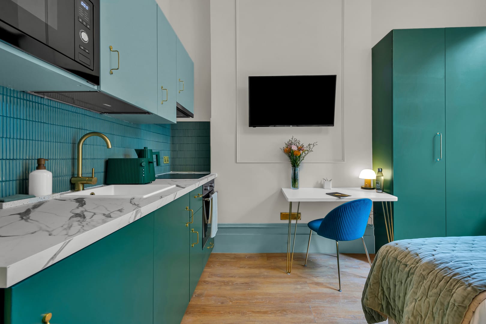 Designed with both short and extended stays in mind, the Serviced Apartments West in Brompton feature thoughtfully furnished interiors that balance style and practicality. Each apartment includes a fully equipped kitchen, spacious living areas, and high-speed Wi-Fi, making it easy to work, relax, or entertain. The décor combines contemporary finishes with a welcoming atmosphere, ensuring every stay feels both functional and relaxing. With Chelsea’s chic boutiques and Earl’s Court’s dining spots nearby, you’re never far from excellent shopping, restaurants, and local conveniences. This mix of accessibility and character makes West Brompton an excellent choice for travellers seeking both connectivity and a more residential London experience.