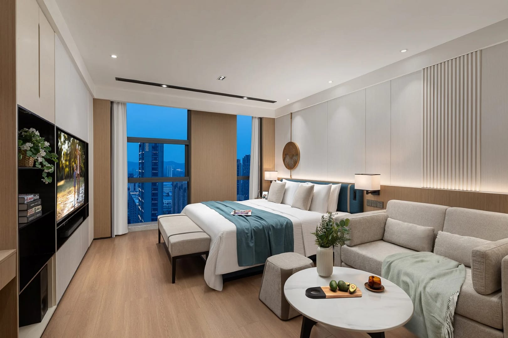 Wuxi New District Aparthotel is situated in the heart of Xinwu District, a dynamic and rapidly developing zone known for its business parks, industrial innovation, and modern infrastructure. The aparthotel stands within Huiye Business Plaza and is in close proximity to major commercial hubs, tech-industry clusters and manufacturing enterprises — a location that appeals to business travellers, relocating professionals, and families alike. Public transport links and road access make it easy to reach both the high-speed railway station and Sunan Shuofang International Airport within a short drive, while nearby retail centres, international schools and services provide everyday convenience for longer stays.