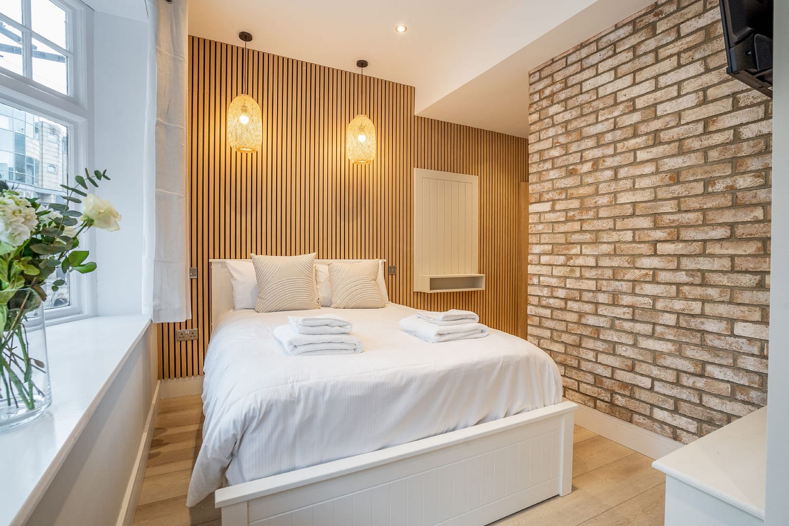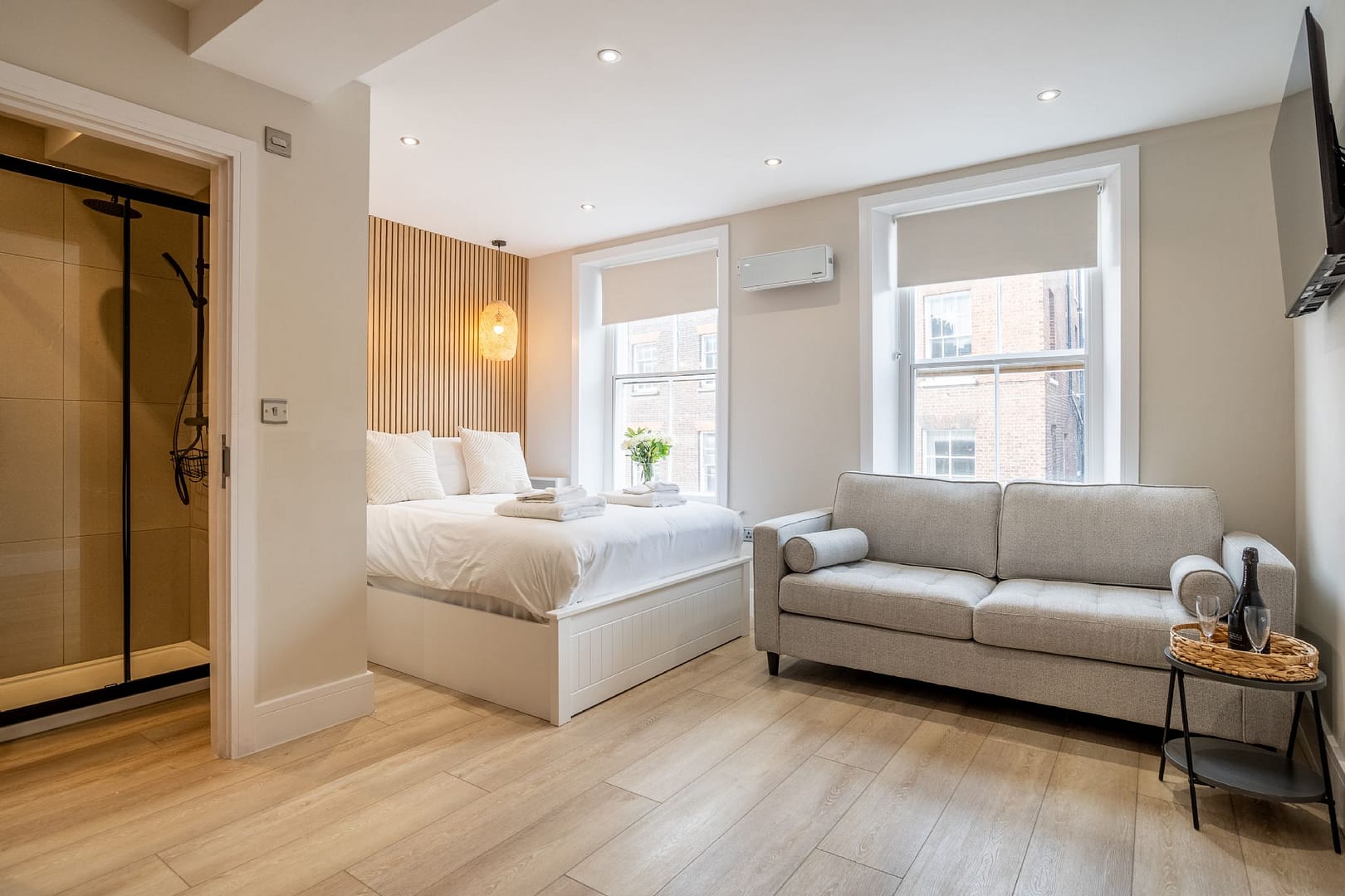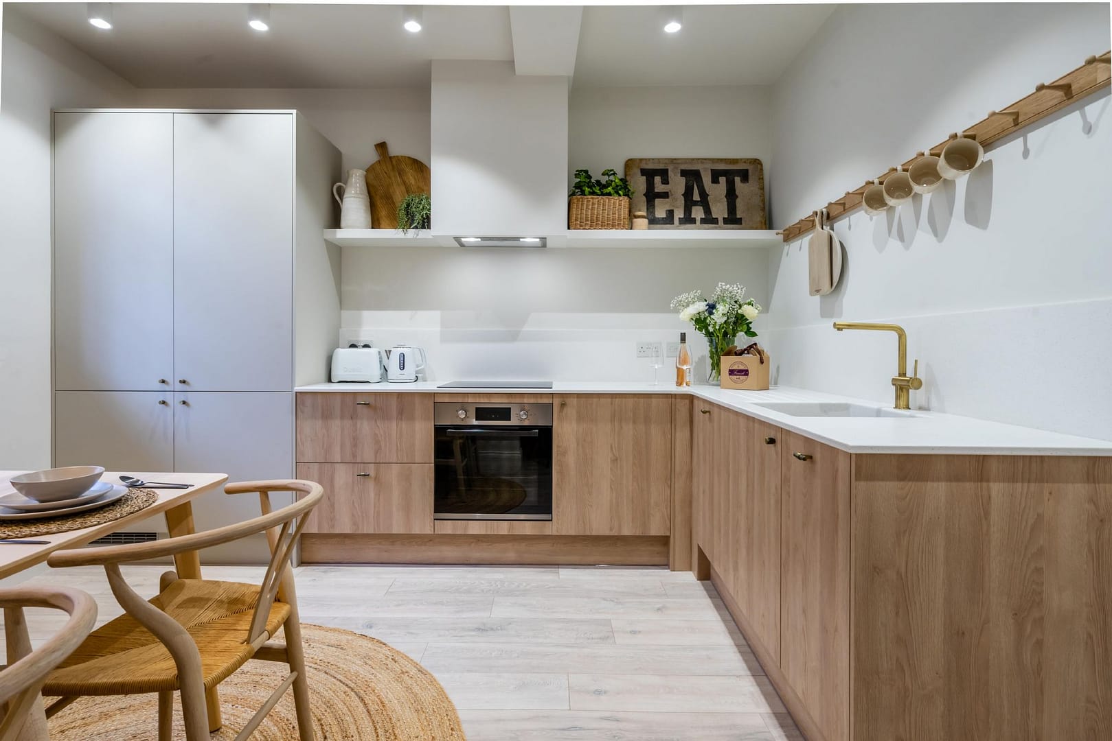 Step inside to discover a beautifully designed living area, complete with plush seating, a Smart TV, and free high-speed WiFi for relaxing evenings in. The fully fitted kitchen has everything you’ll need to make the space a true home-from-home, including a coffee machine for those easy mornings before setting off on your own cat-spotting adventure. Upstairs, the light and airy bedroom features a luxurious king-size bed dressed in soft linens, while the ensuite bathroom offers a boutique-hotel feel with striking brass fixtures and a generous walk-in shower. Thoughtful touches throughout create an atmosphere that is both contemporary and full of character.