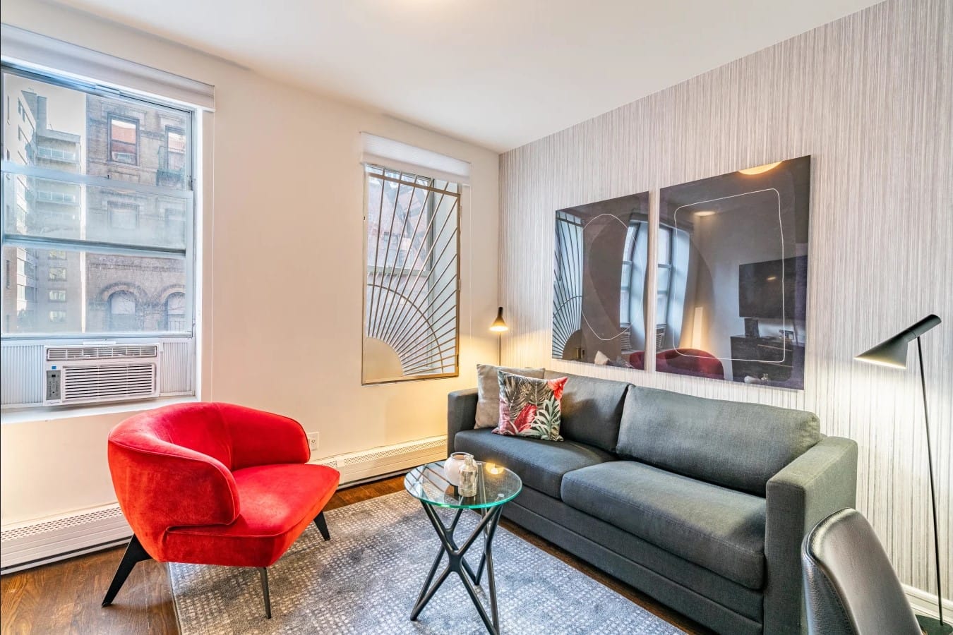 Experience upscale Manhattan living in at Yorkville 1st Avenue Apartments. Spacious two-bedroom, two-bath apartments located in the heart of the Upper East Side. Designed with both elegance and functionality in mind, this modern residence features a fully equipped kitchen with sleek appliances, ample closet space for added convenience, and an in-unit washer and dryer. Each bedroom offers a queen-size bed and a peaceful retreat from the city buzz. Step out onto your private balcony and take in open-air views, ideal for a morning coffee or a relaxing evening. Every detail has been considered to ensure comfort and ease, whether you’re staying for a short visit or a longer stay.