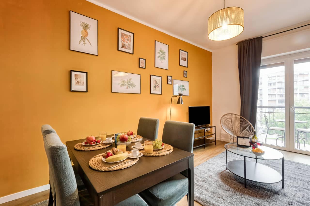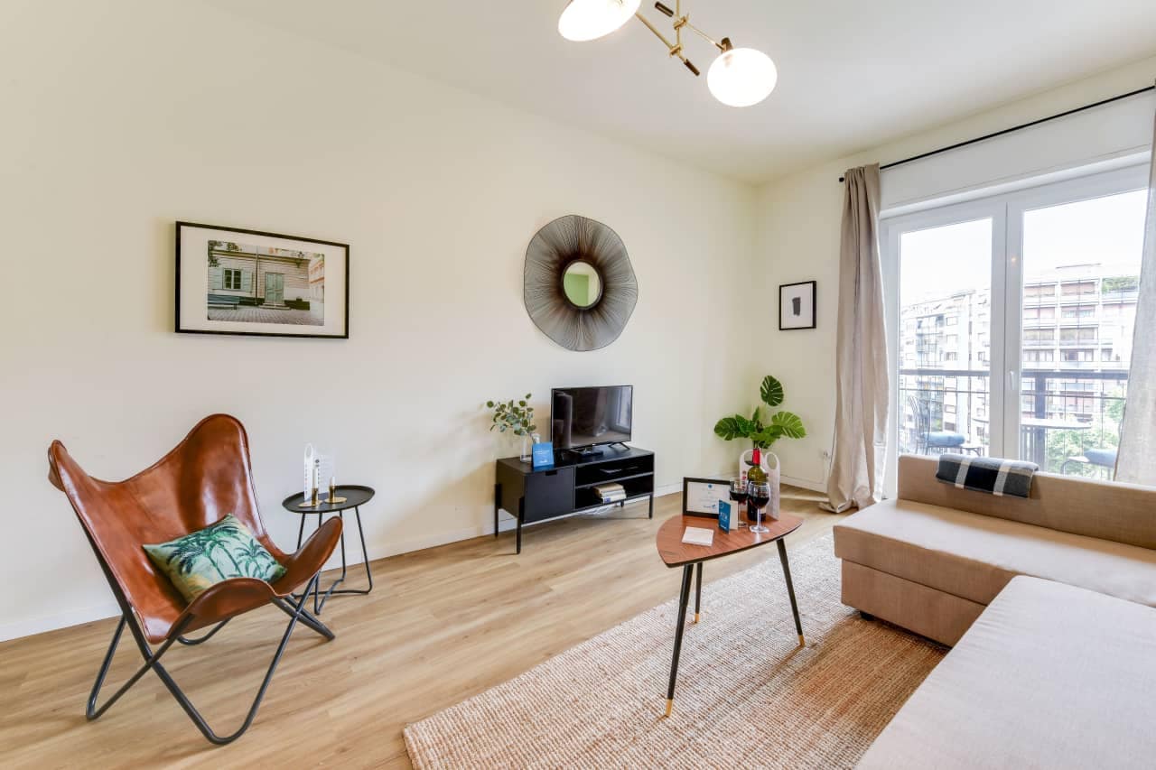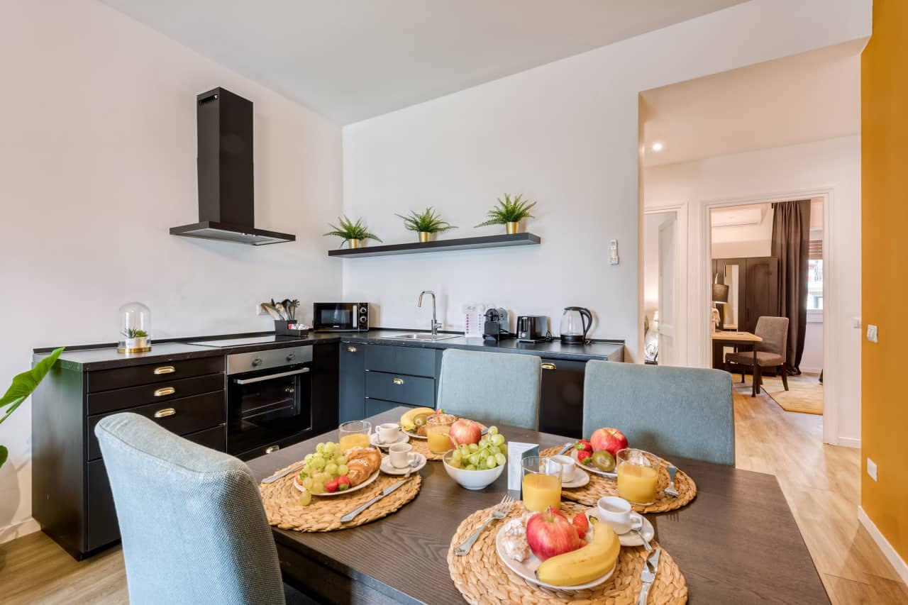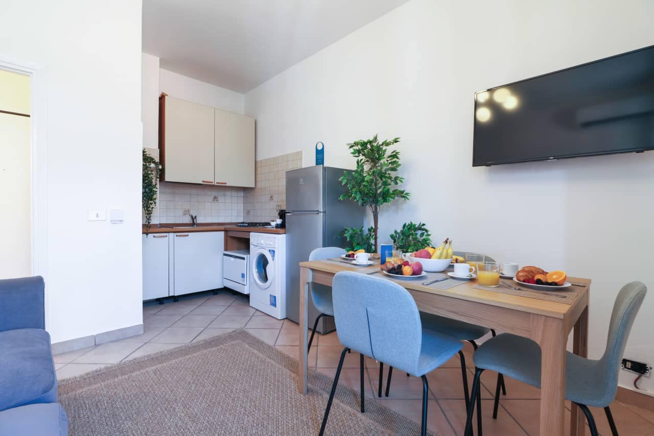 Each apartment is thoughtfully furnished to meet the needs of both short breaks and longer stays. Interiors include a fully equipped kitchen with stovetop or microwave/oven, refrigerator, dishwasher where applicable, and full cookware—so you can prepare your own meals with ease. Living areas are bright and welcoming, furnished with a flat‑screen TV, complimentary high‑speed WiFi and comfortable seating, while bedrooms are designed for restful nights with premium bedding and blackout curtains. Many units also include practical essentials such as washing machines, ironing facilities and storage space, making them well suited to travellers needing a little extra autonomy. Natural light, clean design and smart layouts make the apartments feel spacious and calm even in the heart of one of Milan’s more energetic quarters.