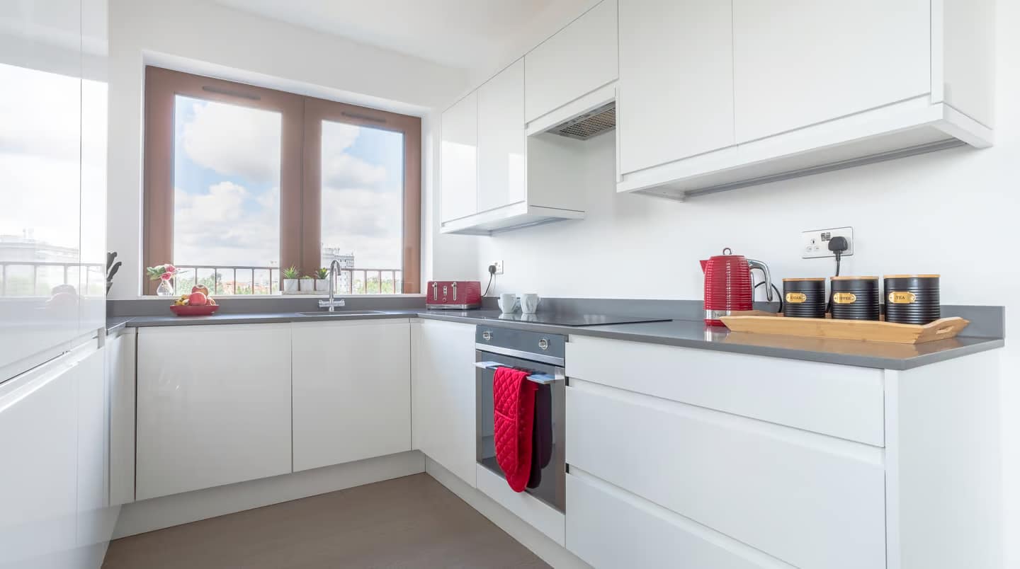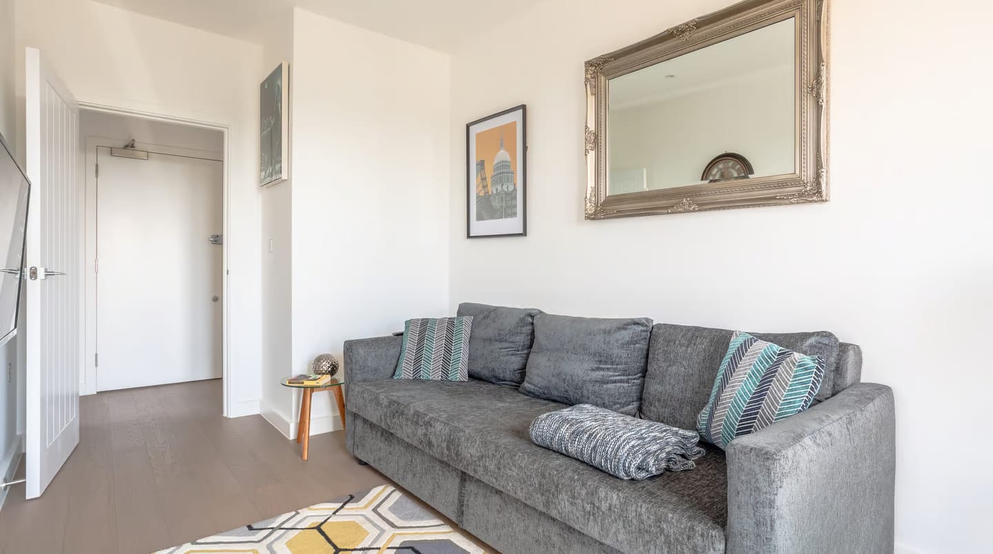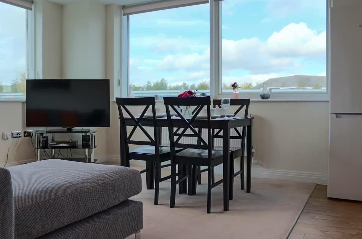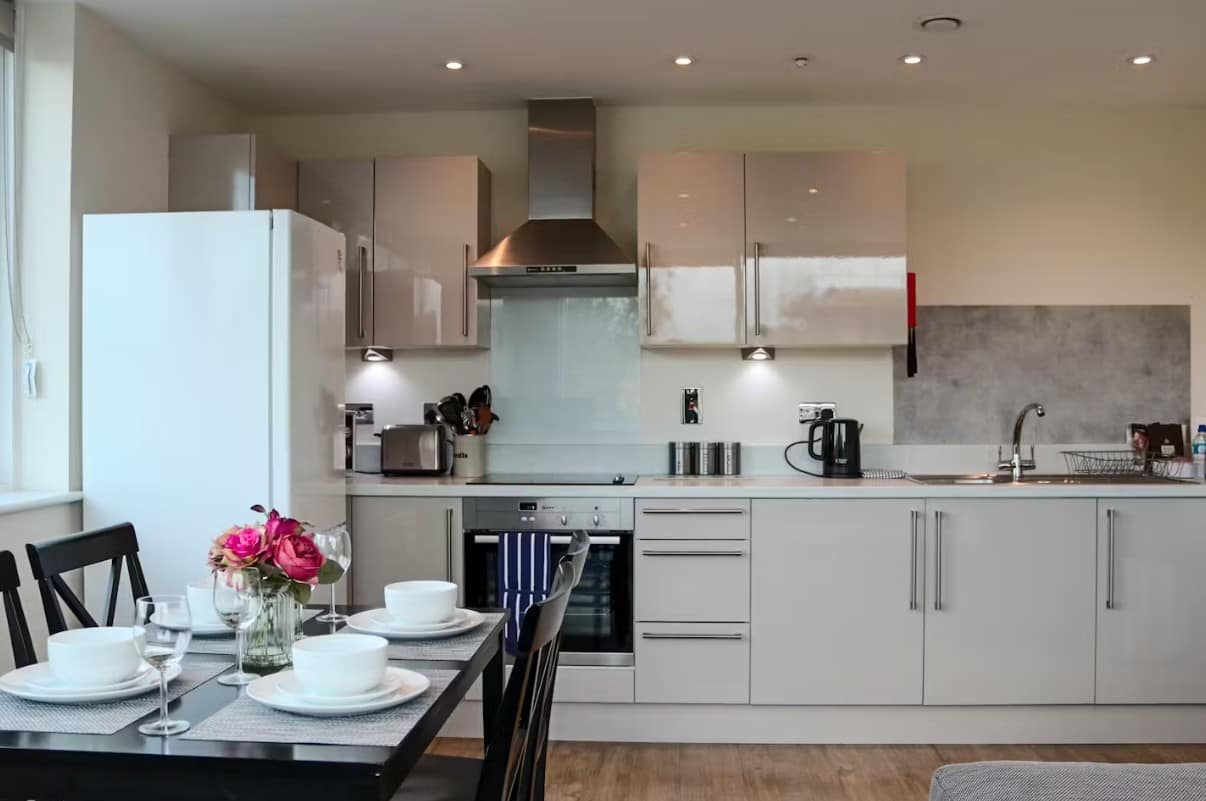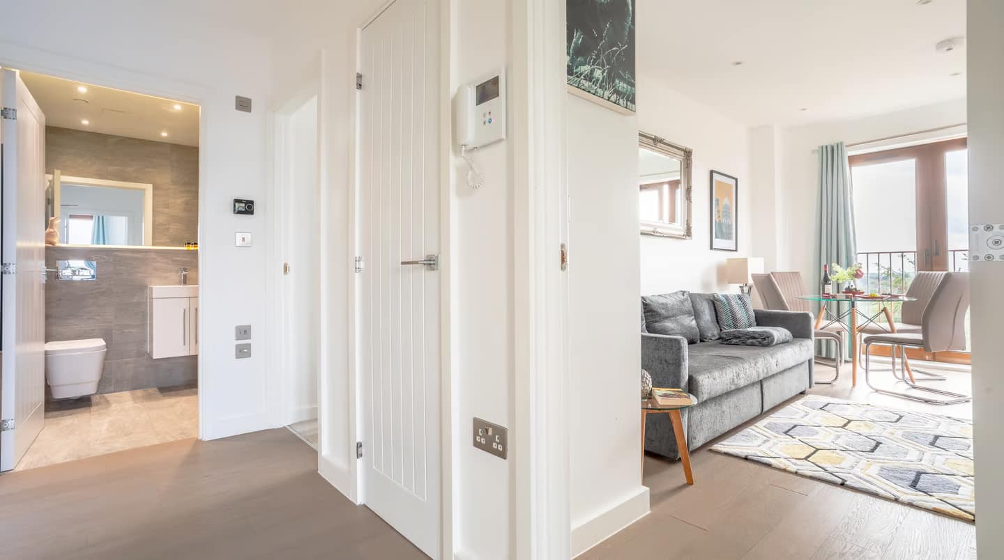 Welwyn Garden City Apartments is a bright, modern two-bedroom apartment in Welwyn Garden City, Hertfordshire, designed for up to 4 guests. The living spaces are arranged to feel open