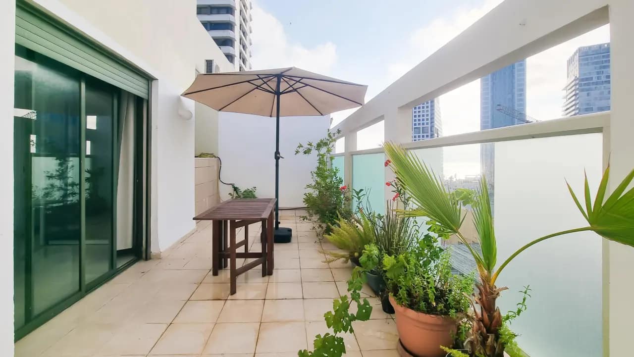 The Jerusalem Beach Apartments offer a charming 75m² duplex penthouse ideal for families or small groups, accommodating up to 4 guests comfortably. With its spacious layout, stunning rooftop terrace,